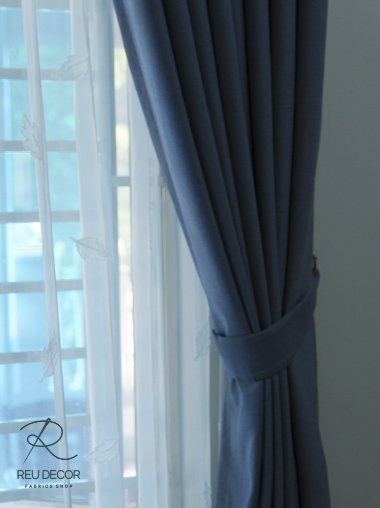 Phòng khách gia chủ lựa chọn mẫu rèm vải thô xanh với họa tiết trơn lịch sự phù hợp với không gian đón tiếp khách, những người bạn, họ hàng người thân. Màu xanh than mang chút gì đó tươi mát, chút gì đó trầm tư tạo cảm giác dễ chịu, nhiều cảm xúc