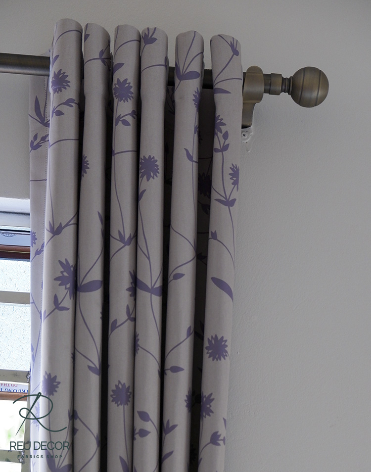 Phòng ngủ Master sử dụng rèm vải họa tiết hoa lá cao cấp nhập khẩu gam màu tím vô cùng nhẹ nhàng và ấn tượng. Màu tím thể hiện cho sự thủy chung, nhẹ nhàng và yêu thương. Với bộ rèm hoa lá này giúp cho căn phòng nổi bật và nhấn nhá khiến không gian nổi bật hơn.